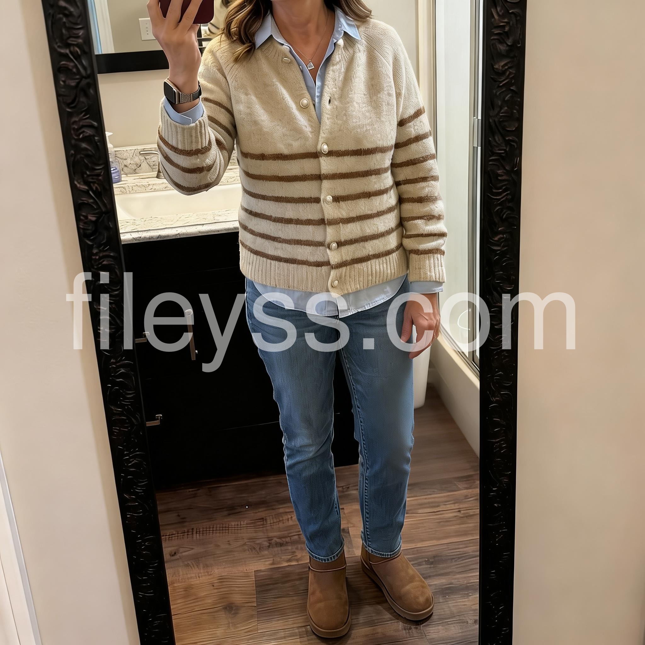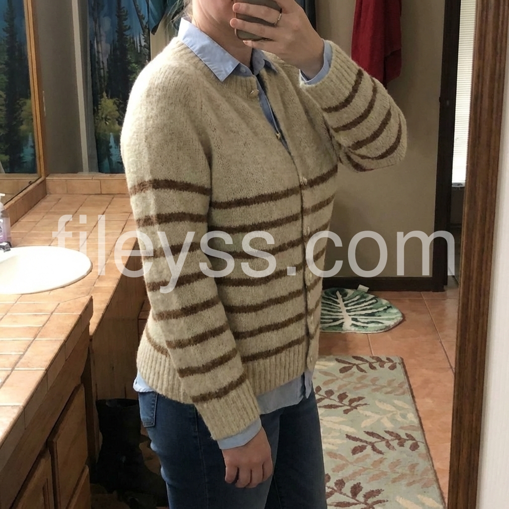 This Apricot Long Sleeve Striped Cardigan is a versatile addition to any wardrobe. Perfect for cooler days, it features a timeless striped design and long sleeves for added warmth. Made from high-quality materials, it's both comfortable and stylish, making it the perfect option for everyday wear. With its classic design and practical features, this cardigan is a must-have for any fashion-forward individual.