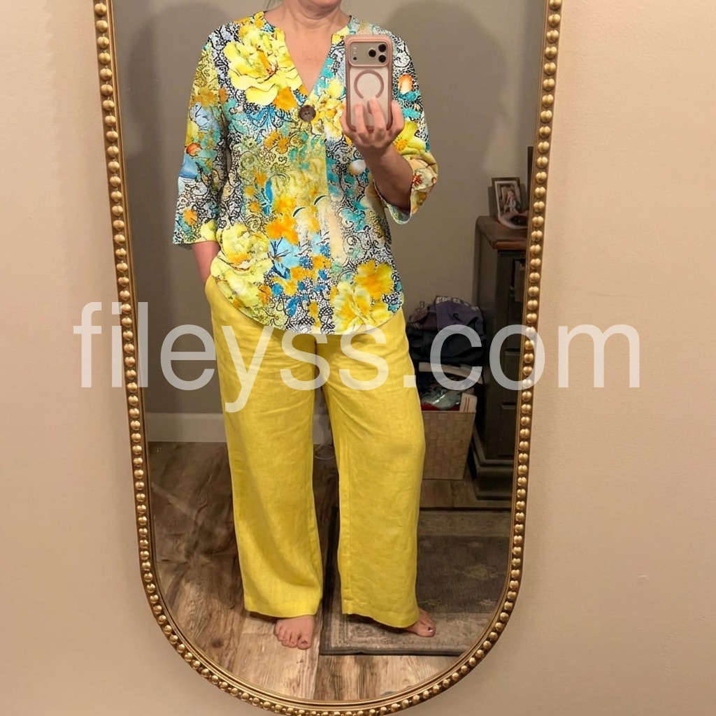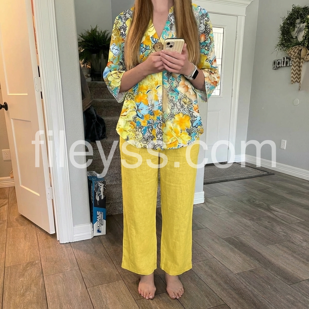 Perfect for my cruise! The fabric is so lightweight and breathable. The yellow floral top is incredibly vibrant, and the matching pants are flowy and comfortable. Got so many compliments.