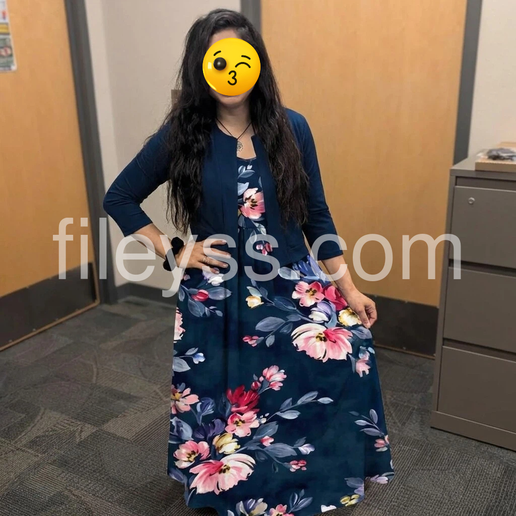 Blue Print Midi Dress With Jacket