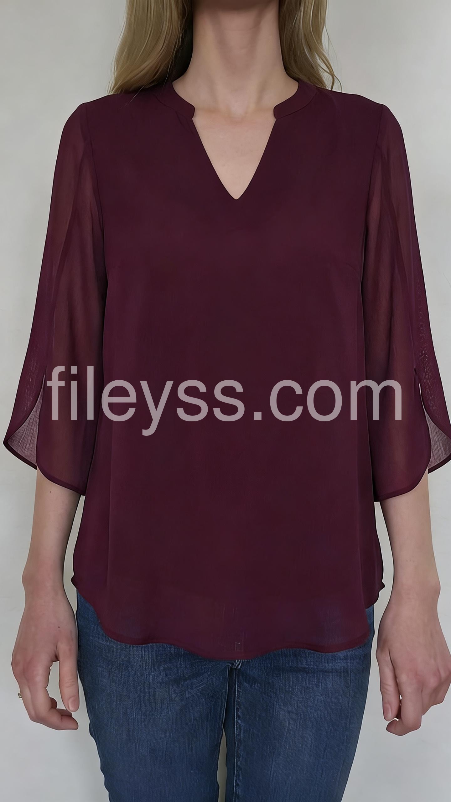 Burgundy 3/4 Sleeve Plain Chiffon Top