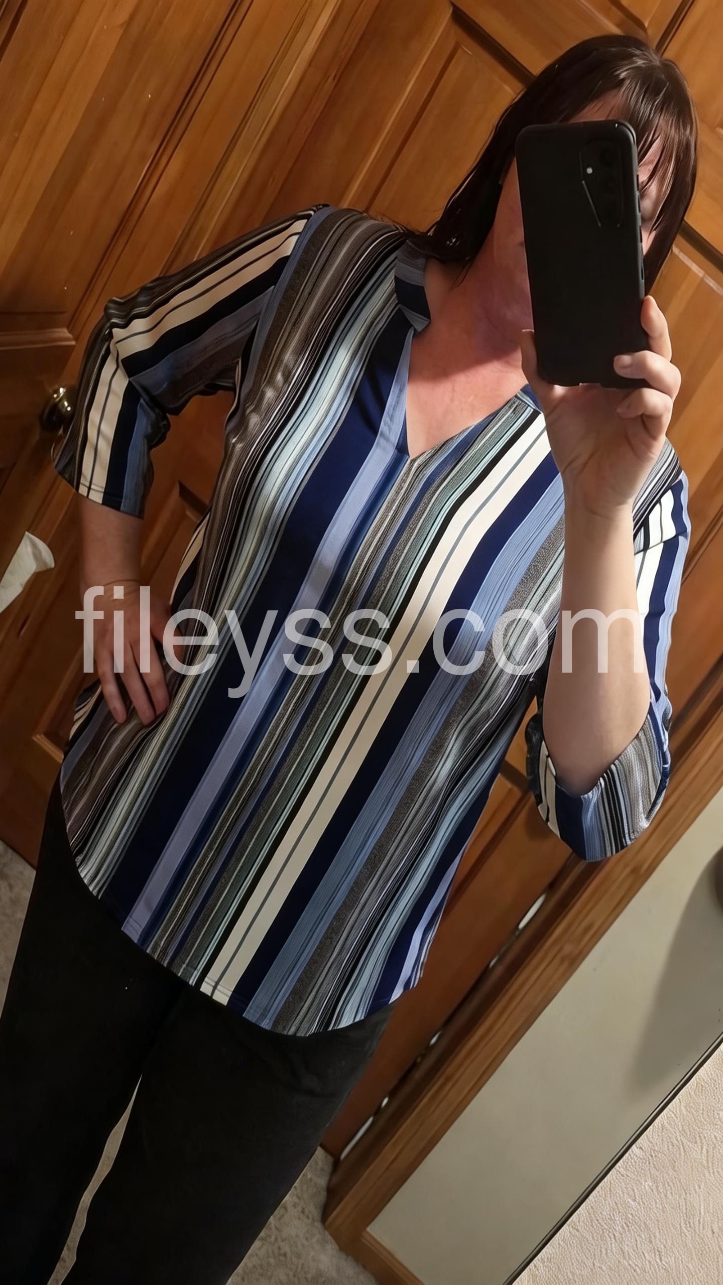 This is a great everyday top. The mix of blues and white is very crisp and nautical looking. It fits beautifully across the shoulders and flows gently over the hips. I will definitely be ordering this in other colors if they have them.