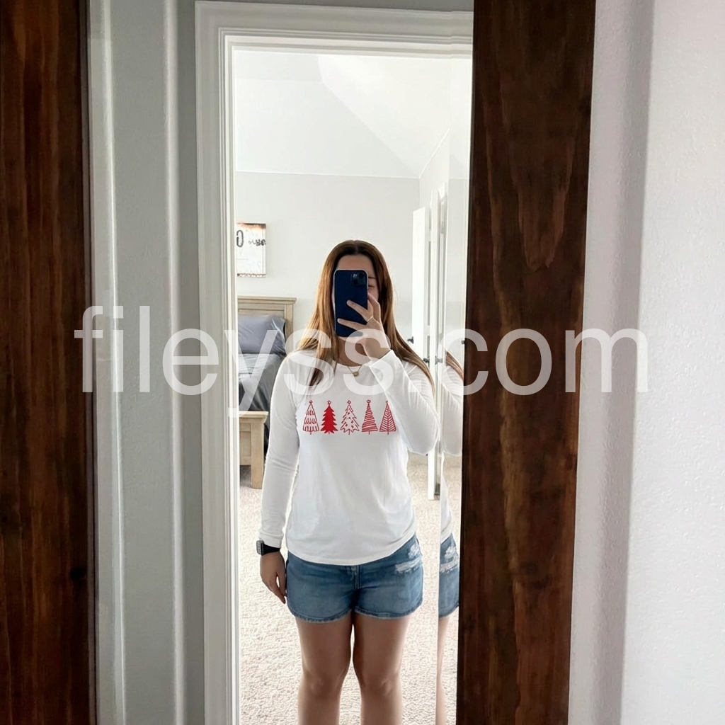 Celebrate the holidays in chic style with this casual Christmas top. A round collar and long sleeves with a waist-length fit make it perfect for layering with a cami underneath and your favorite jacket. A row of cute red Christmas trees gives it just enough holiday cheer, making it versatile enough to wear to work, out, or casually.
