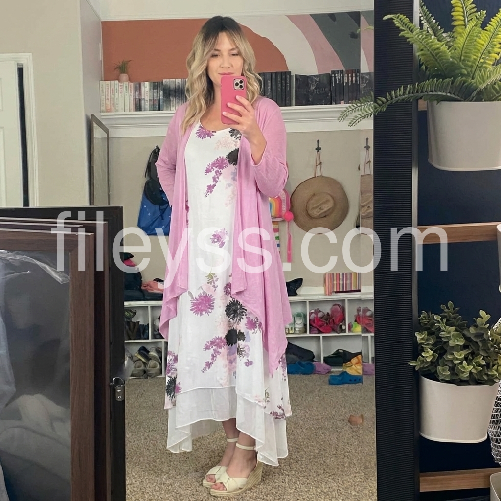 Absolutely love this dress set! The purple cardigan pairs perfectly with the floral dress. It is incredibly lightweight and flowy, making it ideal for summer weddings. I received so many compliments.