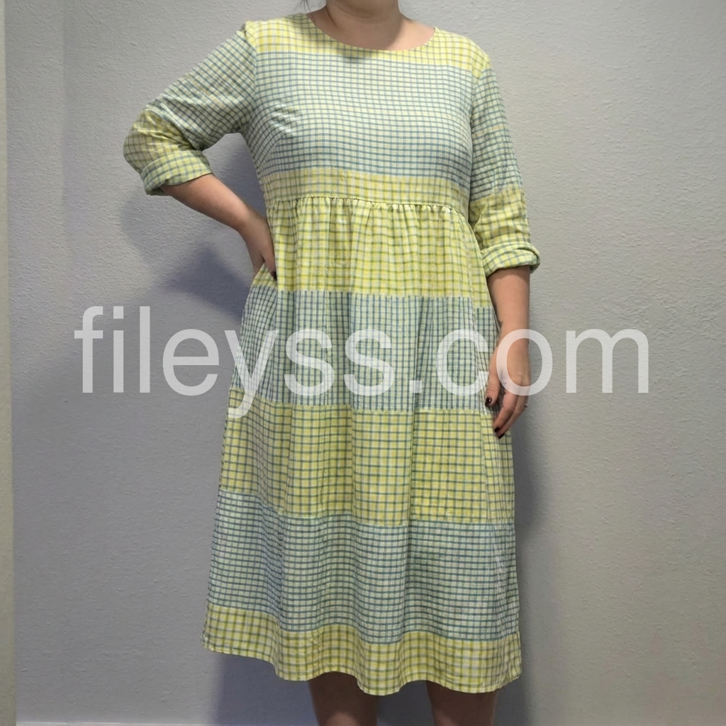 Beautiful pastel colors! The yellow and blue check is so cheerful for spring. It hits right at my ankles and the rolled sleeves give it a nice casual touch.