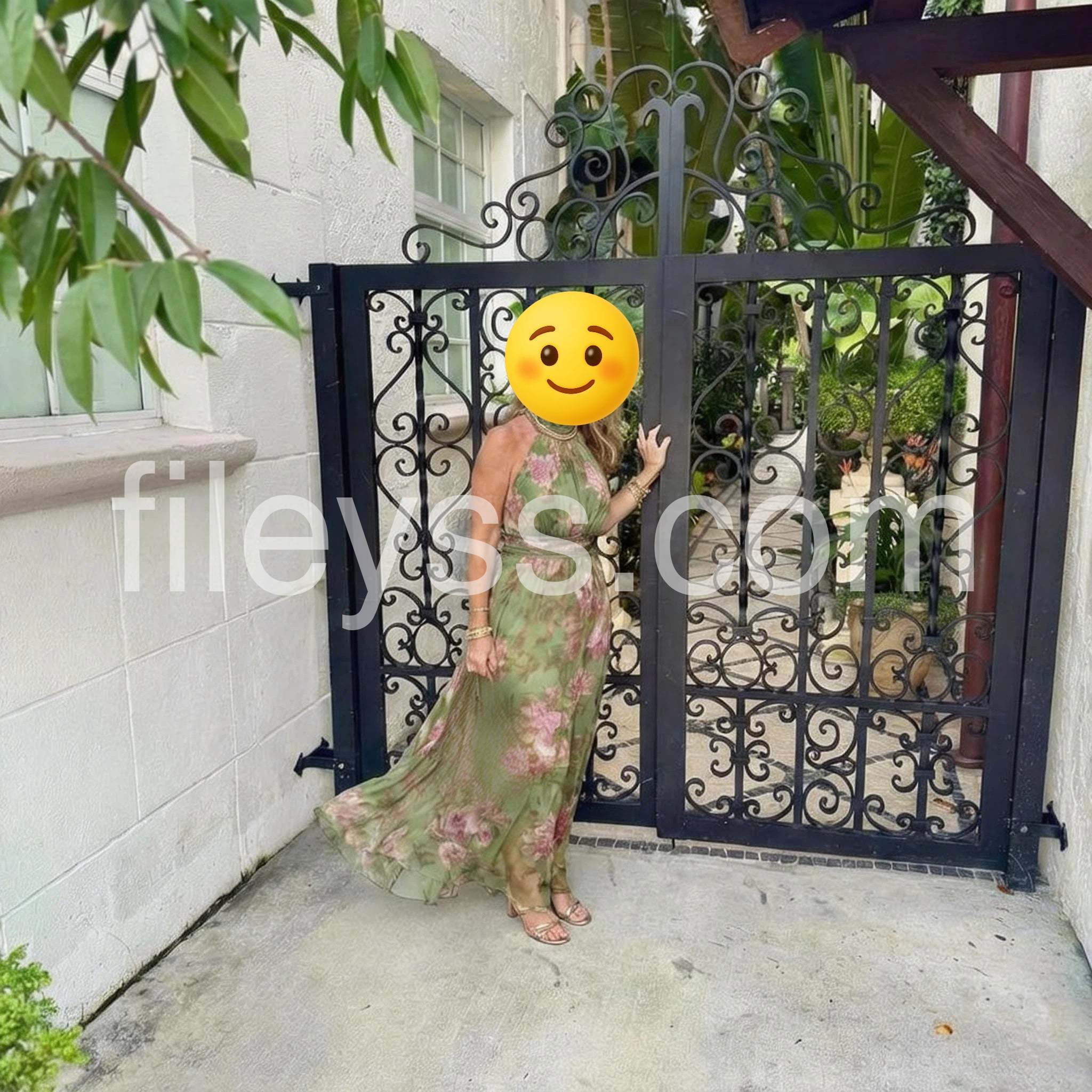 The material is so lightweight and flowy, making it perfect for summer events. The green and pink combination is stunning. It falls beautifully and the cinched waist gives a great shape.