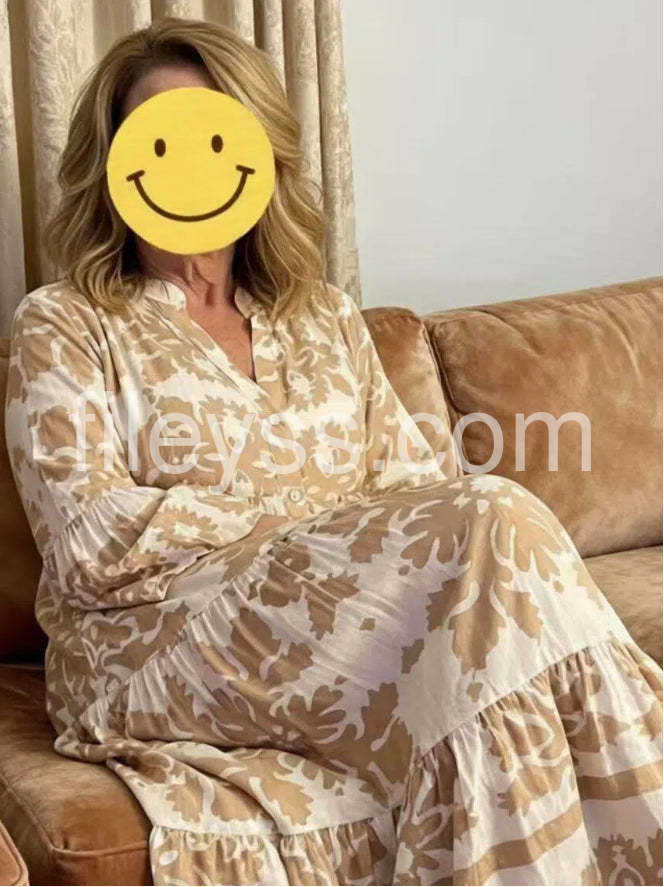 So stunning and elegant yet comfortable enough to wear all day. The neutral beige floral print is really pretty in person. Great quality for the price.