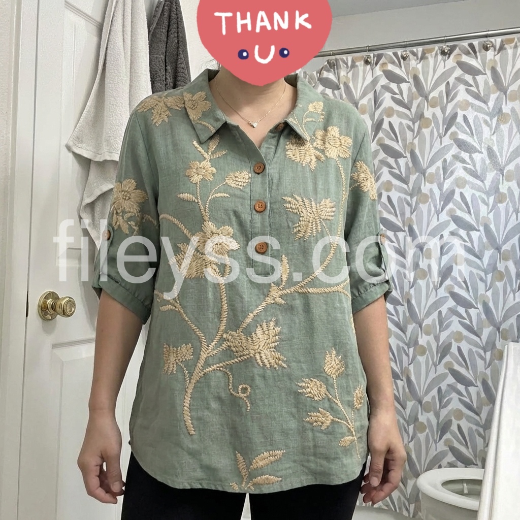 This blouse is a celebration of artisanal luxury. The muted sage base, adorned with intricate golden floral embroidery, evokes timeless sophistication.