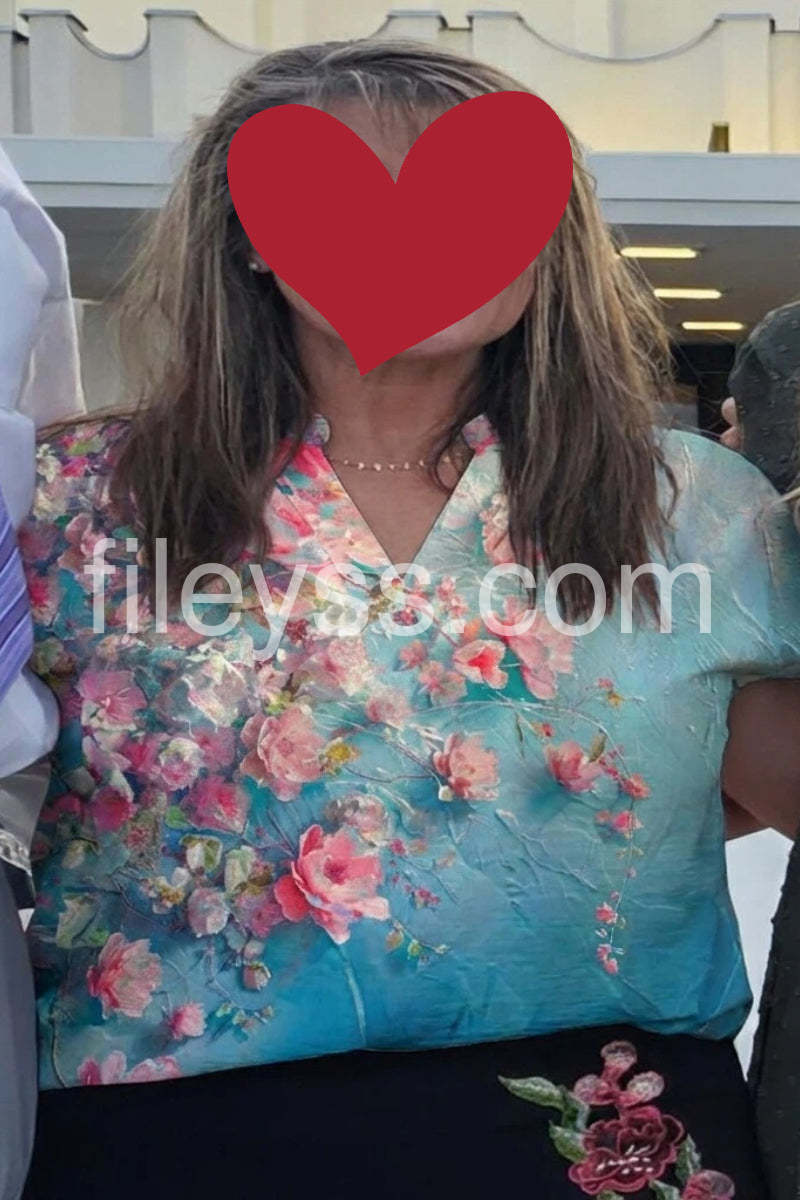 Fresh Turquoise Floral Print Top