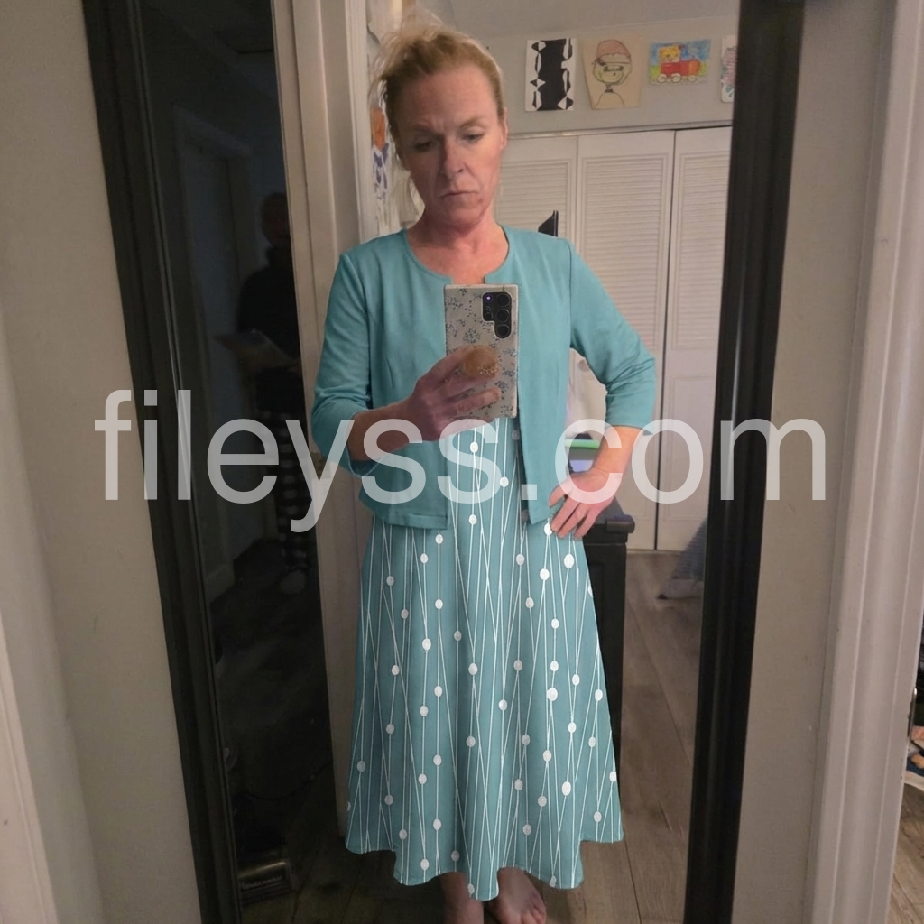 Such a beautiful dress set! The vertical lines really help to elongate the figure, and the little polka dots add a fun, playful touch. The jacket fits perfectly over the dress without looking bulky. I washed it on delicate and hung it to dry, and it came out looking brand new.