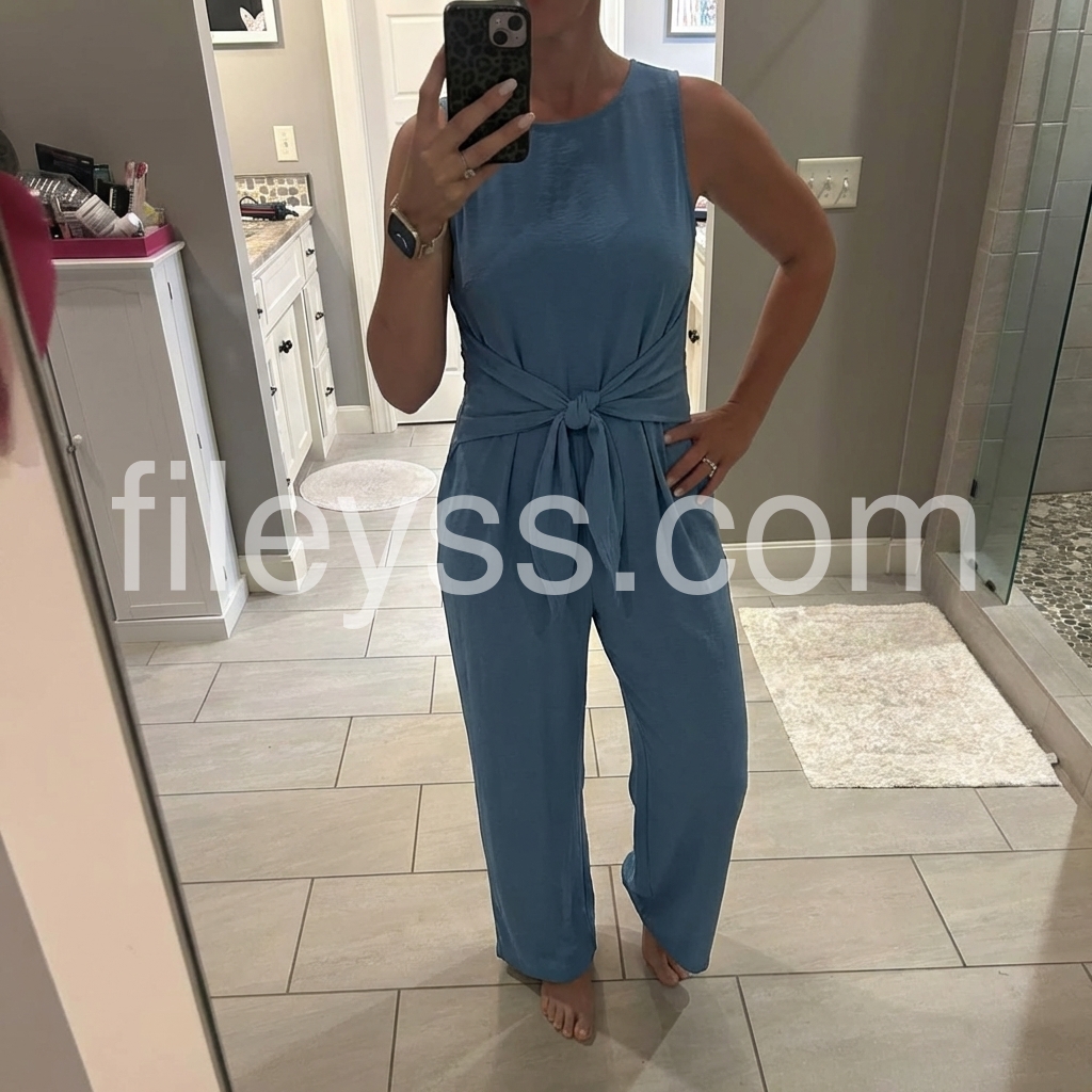 Looks great and is super comfy. I can wear this around the house and feel like I'm in loungewear, but I can also wear this to a nice restaraunt or event and feel like I look nice. The neck is not too tight and the fabric is not itchy or irritating. And the legs are a bit long for my body proportions, they're just right for I wear boots with a bit of a heel. It's also not too feminine, something I struggle to find in jumpsuits like this.