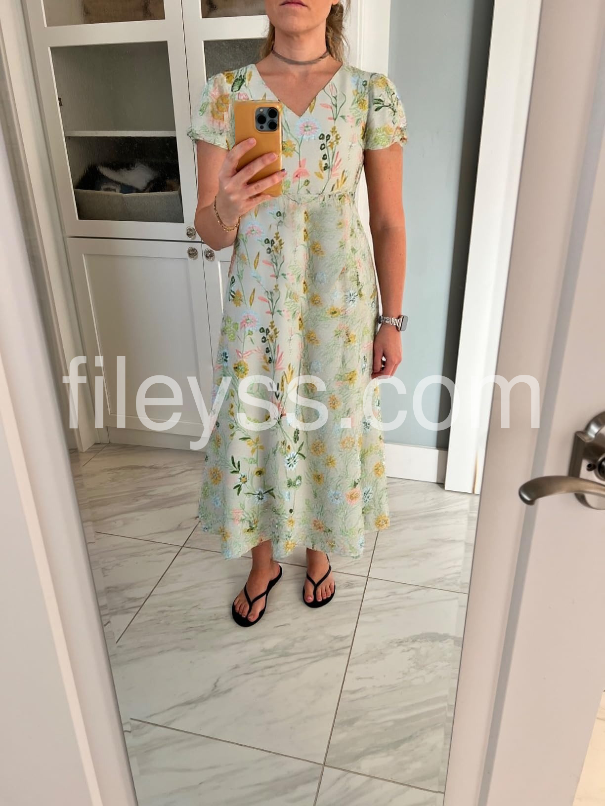 This Distinctive V-Neck Short Sleeve Maxi Dress features a unique v-neck design and short sleeves, giving it a timeless and elegant appearance. Its comfortable and flowy fit makes it perfect for any occasion, while its high-quality material ensures durability. Upgrade your wardrobe with this stylish and functional dress.