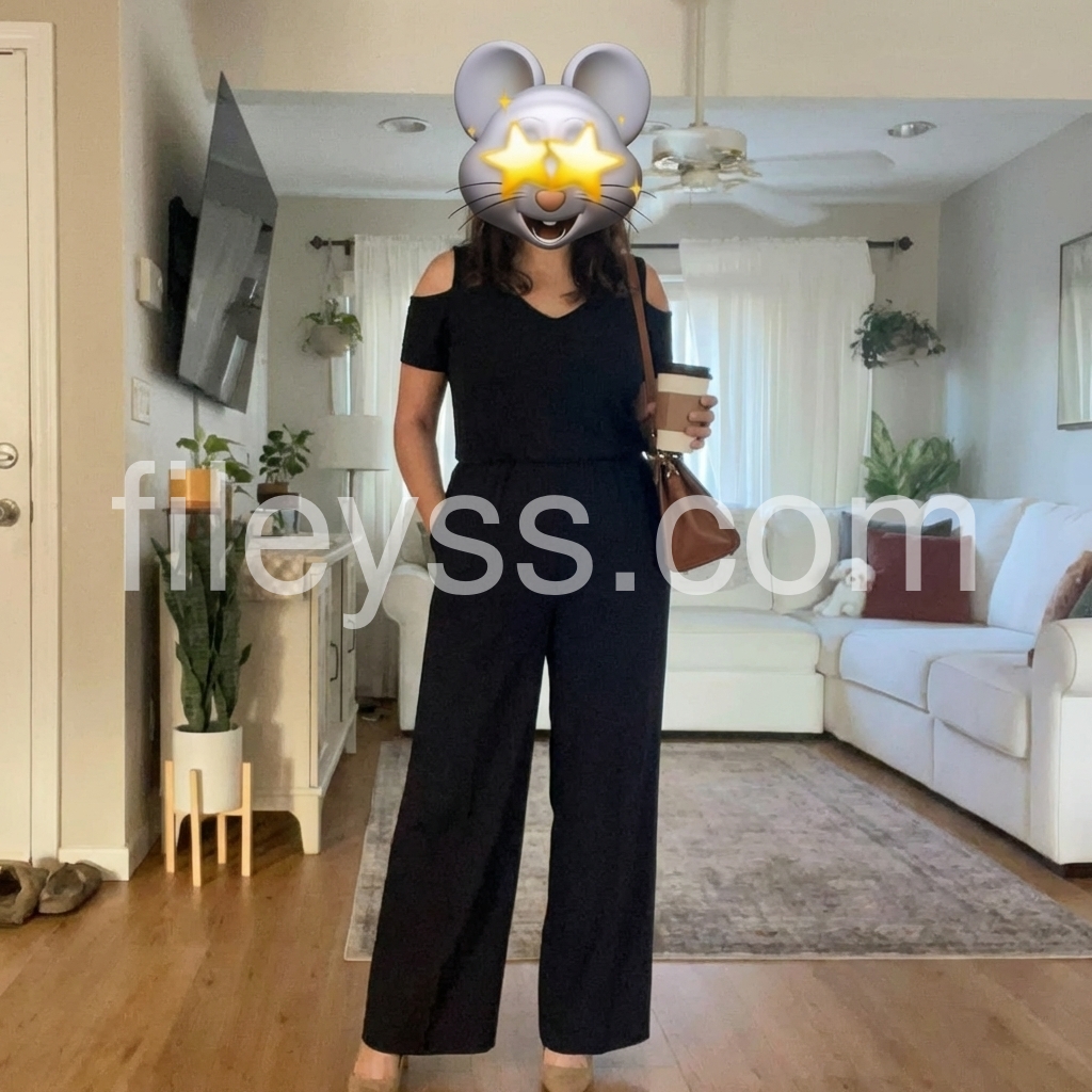 I absolutely love this jumpsuit! The cold shoulder design adds such a cute touch, and the wide legs make it incredibly comfortable. Plus, it has pockets! I wore it on a date night and got so many compliments. Highly recommend!